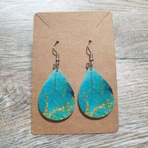 Women Teardrop Blue Gold Acrylic Dangle Earrings Hook Back Beach Core Vacation
