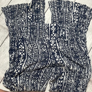 Women Three Dots Wide Leg Aztec Indigo Elastic waist Boho Lagenlook Size Medium