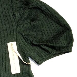 Stretchy form fitting. Full puffy type sleeves. 13" across chest just below armpits. 19" down back