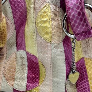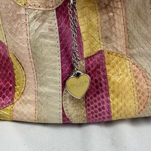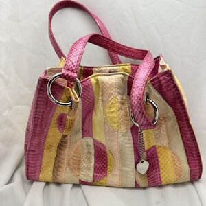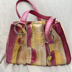 Women Tosca Blu Handbag Purse Snakeskin Pattern Leather Pink Yellow 11"x8"