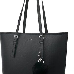 Features: Made from high-quality PU leather exterior that’s soft and wrinkle-resistant, with a spacious interior perfect for carrying everything from your phone and wallet to magazines and cosmetics. The tote measures about 13 x 5.7 x 11 inches and includes a wrist strap for easy carrying. The bottom has 6 metal feet to help it stand upright, and an elegant faux fur ball keychain adds a touch of charm.