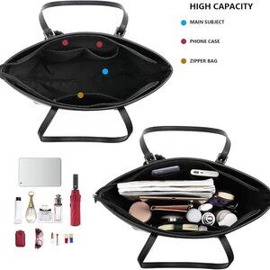 Women Tote Bag PU Leather Large Capacity Shoulder Purse for Work School Shopping