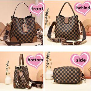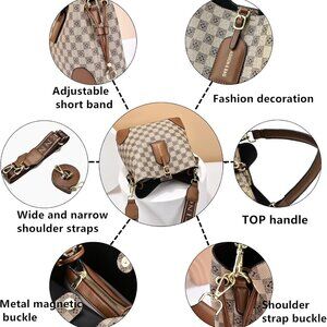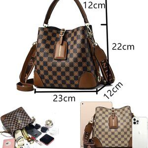 Features: This chic tote features a retro plaid print and multiple pockets—ideal for keeping essentials organized. It has three main compartments, a zipper pocket, and extra ID and internal pockets. Comes with a detachable strap and two adjustable shoulder straps, so you can wear it as a crossbody, shoulder bag, or top-handle satchel. The medium size makes it perfect for daily errands, work, or casual outings.