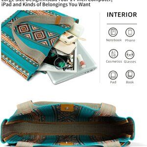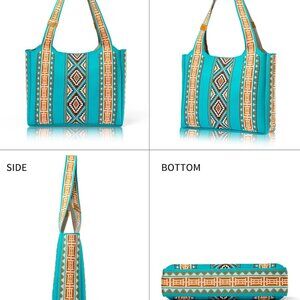 Features: This spacious tote can hold a 14-inch laptop or plenty of shopping finds. Made from sturdy, textured polyester with a colorful woven design, it’s lightweight but durable, perfect for all your daily needs. The bag's slight elasticity makes packing more flexible, and the easy-to-clean fabric keeps sand and dirt out at the beach or on errands.