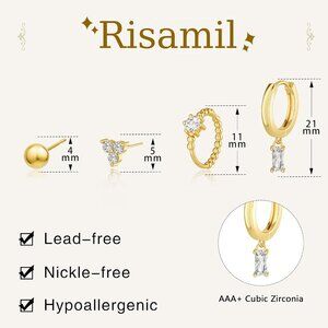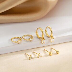 UNIQUE EARRINGS DESIGN: Cute women's cubic zirconia stud earrings with earrings set with cubic zirconia for sparkle and gold tones to match perfectly. These dainty 14K gold stud earring sets look great together, cater for multiple ear piercings in different stacking styles, and are easy to put on and take off. Women's huggie earrings are a must have for any special occasion.