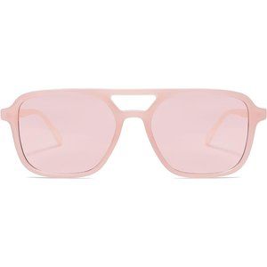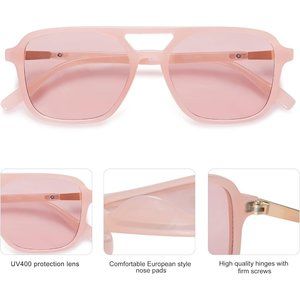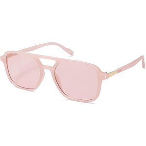 Women Trendy Rectangle Milky Pink Grading Shades Retro Aviator Sunglasses