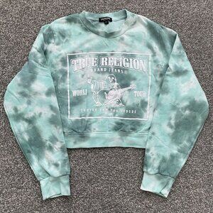 Women True Religion Buddha Green Tie Dye Shrunken Crop Sweatshirt - Size Medium