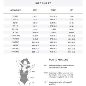 The One Piece Swimsuit is available in various sizes: XS(US 0-2), S(US 4-6), M(US 8-10), L(US 12-14), XL(US 16), XXL(US 18), 18 Plus (US 18W), 20 Plus (US 20W), 22 Plus(US 22W), 24 Plus(US 24W). Please refer to our size chart below the product description.