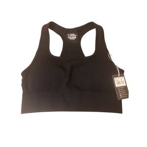 Two-piece Nali Collection black workout set includes new with tags a padded crop top for support and leggings with a scrunch detail on the bottom to enhance your natural curves.