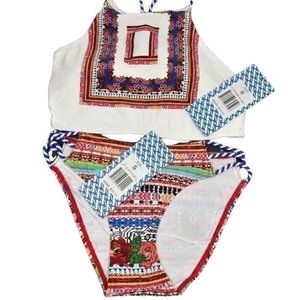 Women Two-Piece Swimsuits High Neck Tops & Brief Bottoms Multi-color