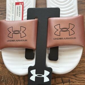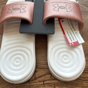 Women UA Under Armour UA W ANSA LE Slide Sandals. Size 8. Rose Gold/Pink White.