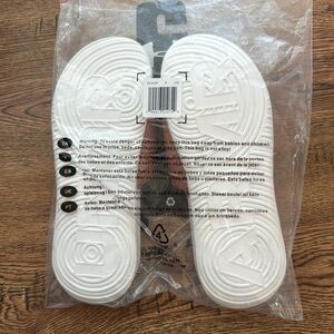 Slide Sandals . Size 8. New with tags. Excellent condition.. Rose Gold/Pink and white. These slides feature a fixed strap with a foam padding underneath for an extra comfortable fit. The drop-in EVA footbed provides underfoot cushioning while the EVA outsole delivers great durability & traction. Comes from a smoke free home.