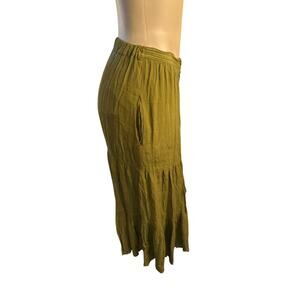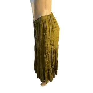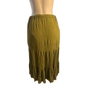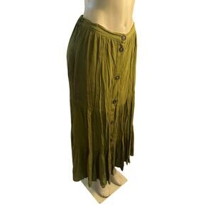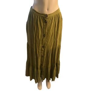 Women US-4 French Connection Esha Button Front Maxi Skirt Green Tiered Ruffled