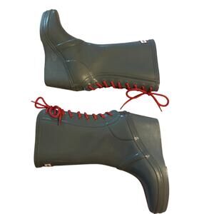 Women US-6M Hunter Verbier Lace-Up Platform Wedge Heeled Rain Boots Rainboots