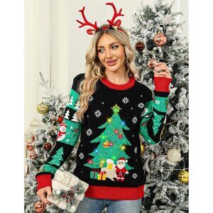 Women Ugly Christmas Sweater LED Lights Tree Funny Holiday Party X-Large