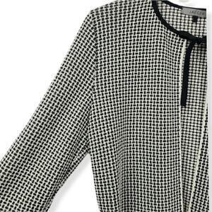 Jaeger black and White patterned knit sweater cardigan with ties at the neck