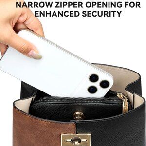 Features: This chic crossbody features three compartments — a zippered middle section and front/back pockets secured with twist-lock and magnetic snap, keeping your essentials organized and safe. The adjustable strap, ranging from 18.11 to 22.83 inches, allows you to wear it casually or more dressed up. Compact yet roomy, measuring 8.56"L x 3.94"W x 8.56"H, it fits wallets, phones, keys easily. The minimalist design is versatile for work, errands, or weekend outings.