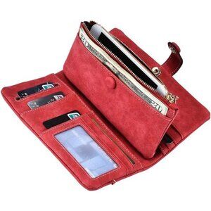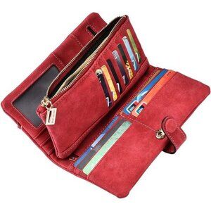 The womens wallet made with high quality vegan leather, elegant curved buckle, exquisite sewing thread, wear-resistant fabric lining, craftsman create, perfect quality