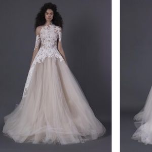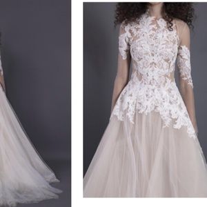 Vera Wang Olympe long sleeve lace bodice with tulle a line skirt.