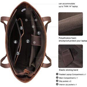 *【Roomy Capacity】14.56"(Upper L) x 10.62"(Bottom L) x 5.31"(W) x 14.96"(H), IT FITS UP TO 14" THIN LAPTOP; Top handle straps drop: 11.81"; Straps width: 0.59 - 0.78"; Net weight:2.35lbs