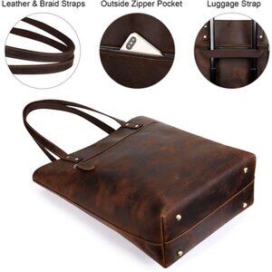 *【Long-term Use】Premium grade crazy horse leather (100% genuine leather) and bronze tone rustproof hardware as materials which looks so retro, classic, delicate and chic. Don’t worry about breaking or tearing issue with the TRIPLE REINFORCED stitching and nail at the the handles. There are 4 metal rivets under bottom to protect it from blots and abrasions, the leather and braid combined handles can bring more comfortable experience to your shoulders