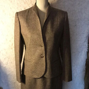 Women Vintage Professional Tweed 2 Piece Skirt Suit Sz 10 100% Wool Preowned Fully Lined Midi Business Classic Timeless Workwear Winter Corpcore Officecore Lawyer Secretary Preowned