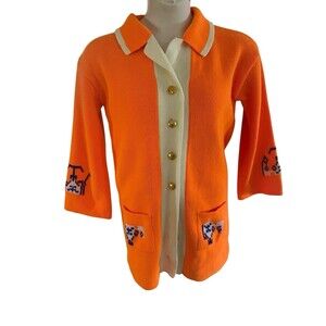 Vintage Darling France Orange Knit Coat with Pixel Dog Motif, Size 40