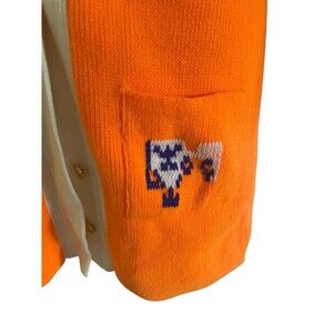 Women Vtg 70s Cardigan Sweater neon Orange Darling Knitwear France Dopamine
