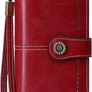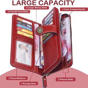 Women Wallet Faux Leather Large Capacity Credit Card Holder Wristlet Red — A practical yet stylish accessory.