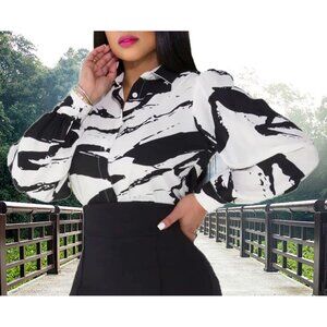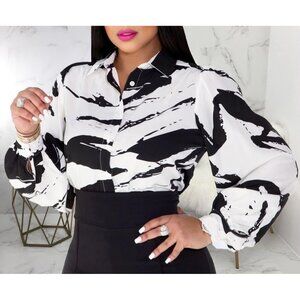 Women White Blouses Button Down Shirts Colorful Long Sleeve Floral Print Tops