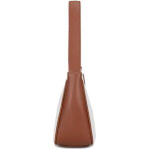Women White Brown B Imported Polyester Leather Zipper Closure Mini Tote Handbag