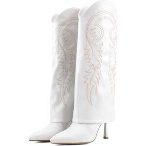 Western Fold-Over & Embroidery: These knee-high boots blend classic Western style with delicate embroidery. The trendy fold-over shaft (stylable as knee-high or mid-calf) adds a chic, vintage touch to any look