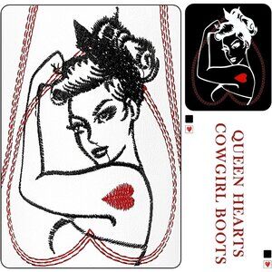 UNIQUE ARTISTIC DESIGN: These white cowgirl boots are a bold blend of classic western style and modern art, with an embroidered pattern on the shaft inspired by the playing card “Queen of Hearts”, symbolizing confidence and strength.The unique embroidery also shows women's positive and optimistic attitude towards life.