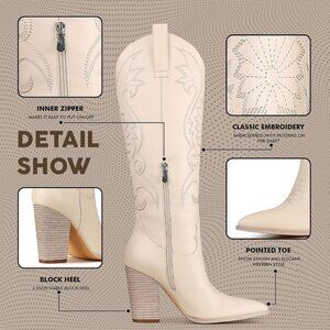 ⚡Women White Imported Pointed Toe Chunky High Heels Pull-on Western Boots