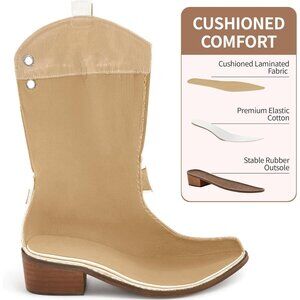 Premium Upper & Lining: These cowgirl boots for concerts feature a high-quality PU leather upper that is soft yet highly durable, and a soft synthetic lining that hugs the ankle comfortably without causing irritation.