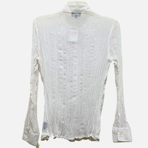 Women White Shirts Lace Front Long sleeve Collared Button Down Size M NWT