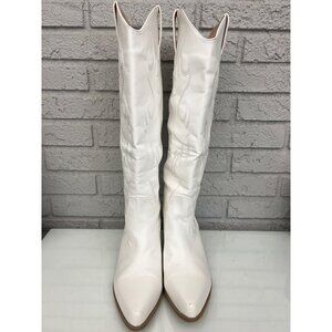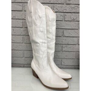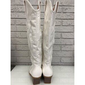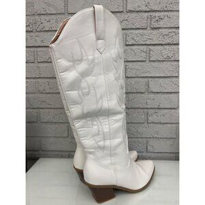 Women White Stitching Detail Knee High Cowboy Boots Size 41(10-10.5)