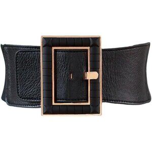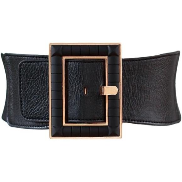 - Retro design buckle belt, transform your clothing look in seconds. This fashion black lady waist belt can cinch your waist for an hourglass figure,highlight your figure perfectly.
