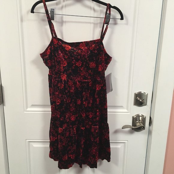 Women Wild Fable Spaghetti Strap Floral Red Crushed Velvet Mini Dress NWT - M