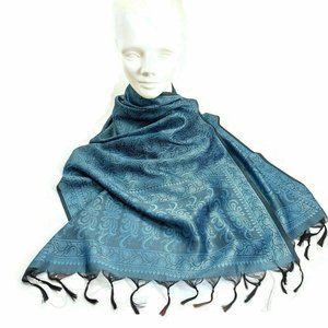 Women Winter Shawl Wrap Scarf Neckwear Blue Silk Holidays Gift For Her