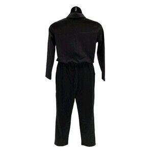 The Women With Control Black Cat One Piece Jumpsuit in size 3X is a stylish and comfortable loungewear option for women. Made from 100% polyester knit fabric, this long-sleeve jumpsuit features a collared neckline, button closure, and a belted waist for a flattering fit. The black color with a solid pattern and black cat character design makes it perfect for everyday wear during the winter, fall, and spring seasons. With its plus-size fit and machine-washable care instructions, this jumpsuit is a practical and fashionable choice for those looking for a cozy yet chic outfit.