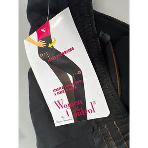 Women With Control Regular Faux Drawstring Waist Pants with Pockets Black Medium