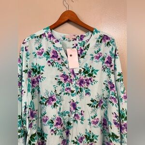 Women Within Floral Print Blue 3/4 Sleeve Women's Plus Top Blouse V Neck 2X NWT