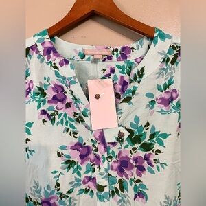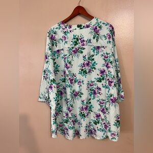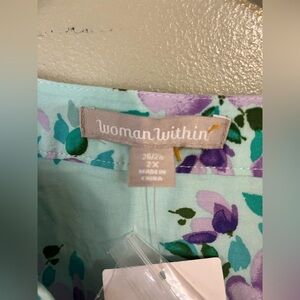Women Within Floral Print Blue 3/4 Sleeve Women's Plus Top Blouse V Neck 2X NWT Soft Cozy 100% Rayon Great For Vacation Casual Festival Wear See Pictures For Details and Measurements