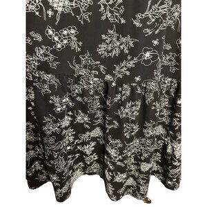 Women Within Sleeveless maxi dress in black and white with a floral print, oversized and layered design, and a baggy comfortable sheath fit. This dress comes with pockets, a chest measurement of 21, a waist measurement of 26, and a length of 52. Made in India from 95% cotton and 5% spandex, it's machine washable.