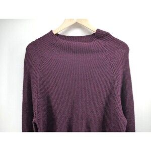 Women Wool Blend Sweater Knit Mock Turtleneck Large Purple Express NEW