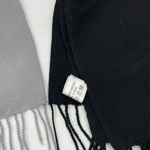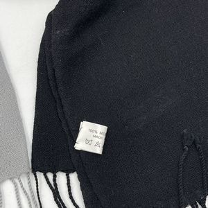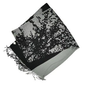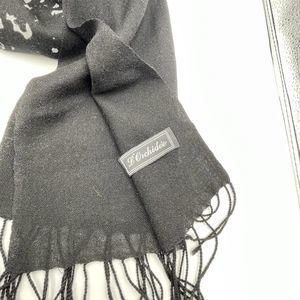 This scarf has fringe accents and a logo that adds a touch of elegance to it.