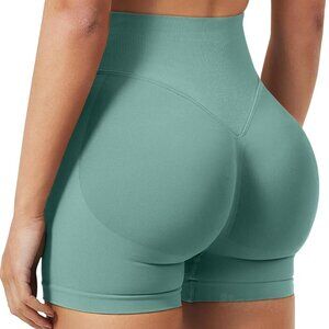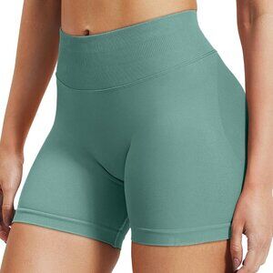 Women Workout Impact Shorts - Pistachio - Medium - 4.5 Inch Y-Shape Seamless Scr