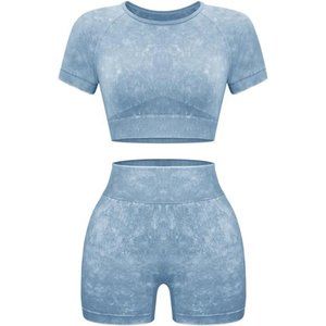 Women Workout Sets - Seamless Yoga Outfits Shorts & Crop Top Matching Gym Set