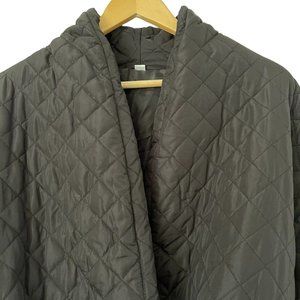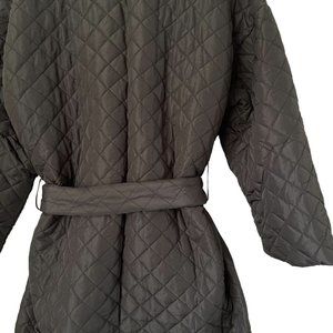 Women Wrap Long Padded Coat Oversize Large L Black Tie Adjustable Pockets